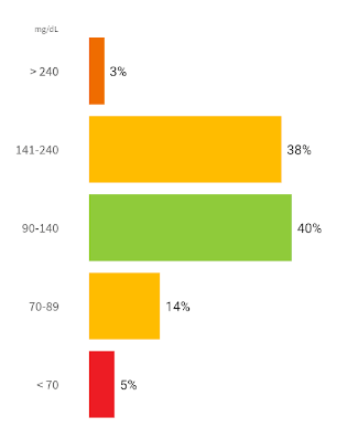 Een grafiek met het percentage van de tijd waarin uw sensorglucosemetingen boven, onder of binnen het doelglucosebereik lagen.