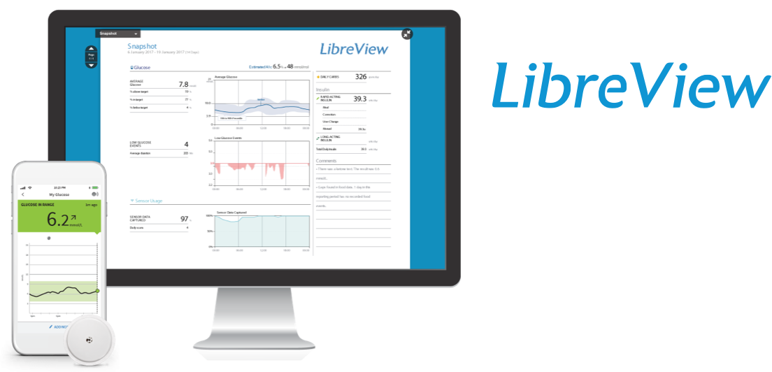 †† Use of FreeStyle LibreLink requires registration with LibreView. Automatic upload requires a wireless internet connection or mobile data connection.