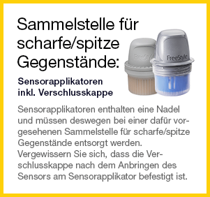 Der Sensor der FreeStyle Libre Glukose-Messsysteme («Sensor») ist bei Verwendung mit einem kompatiblen Gerät zur Messung der Glukosekonzentration in der interstitiellen Flüssigkeit bei an Diabetes mellitus erkrankten Personen ab 2 Jahren (FreeStyle Libre 2 Plus und Freestyle Libre 3 Plus Sensoren) respektive 4 Jahren (FreeStyle Libre 2 und FreeStyle Libre 3 Sensoren) einschliesslich Schwangeren angezeigt.