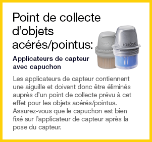Le boîtier du capteur, FreeStyle, Libre, et les marques apparentées sont des marques d’Abbott. Les autres marques sont la propriété des fabricants respectifs.