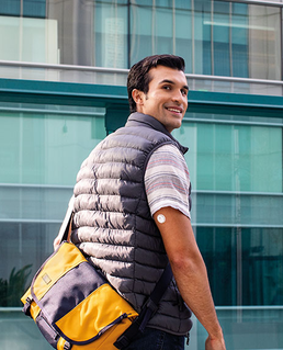 Le capteur est facilement fixé au dos du haut du bras et peut être porté pendant une période maximale de 15 jours.3