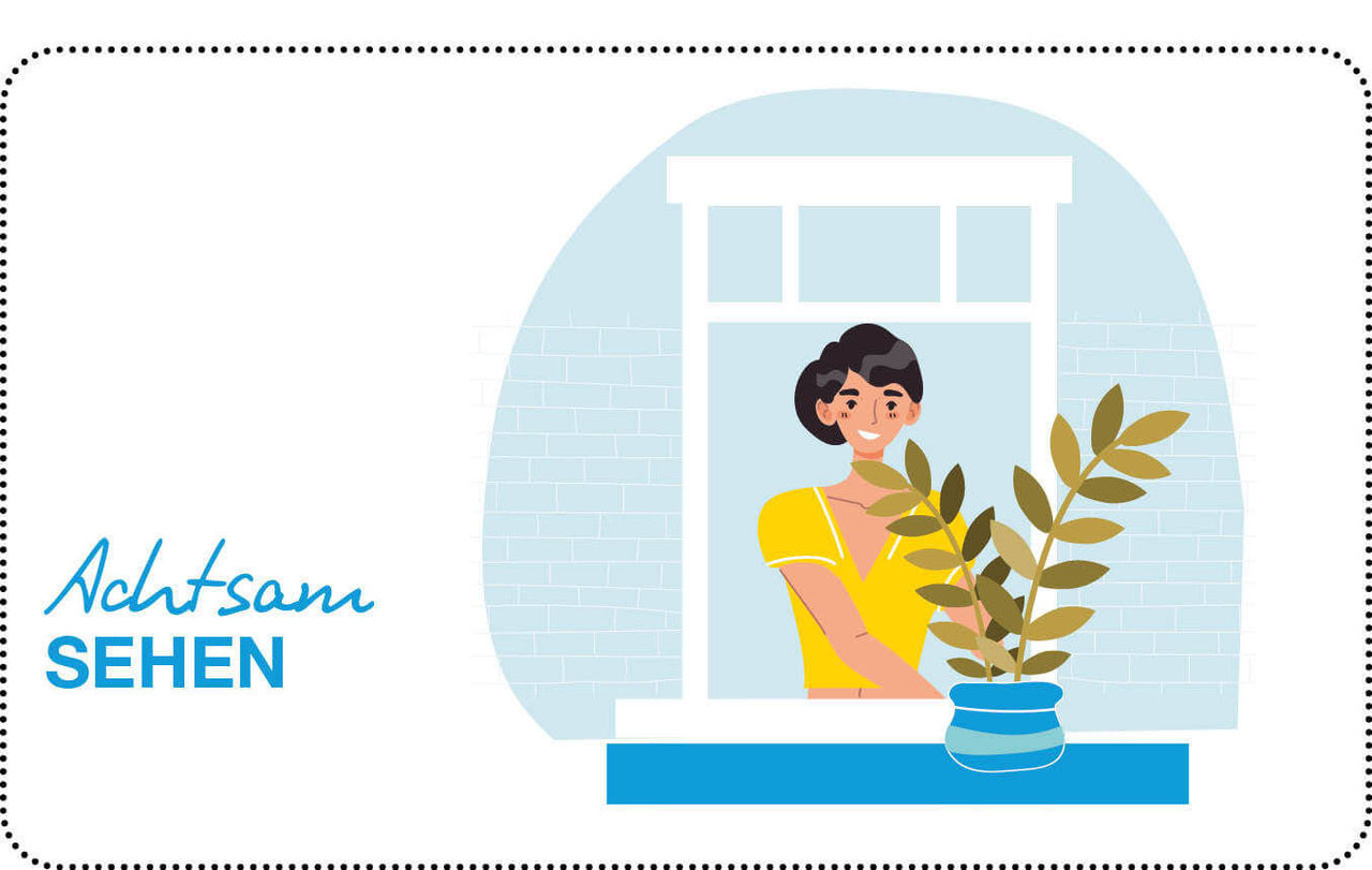 Schauen Sie täglich eine Minute aus dem Fenster. Fokussieren Sie sich zum Beispiel auf einen bestimmten Baum. Beobachten Sie, wie er sich im Laufe der Monate verändert und wie sich die Blätter langsam färben. Achten Sie auf die Intensität der Farben. Halten Sie inne und nehmen Sie den Baum in seiner ganzen Form und allen Details bewusst wahr.