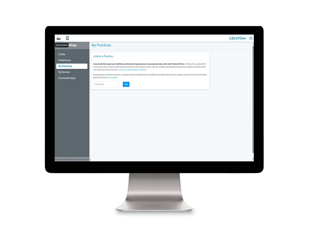 Ask your healthcare provider for their LibreView Practice ID, enter the code into the field provided in your LibreView account online, and follow the prompts.