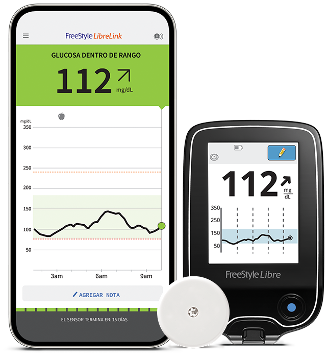 Lector FreeStyle Libre (negro) o app FreeStyle LibreLink. |