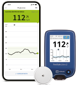 Lector FreeStyle Libre 2 (azul) o app FreeStyle LibreLink. |