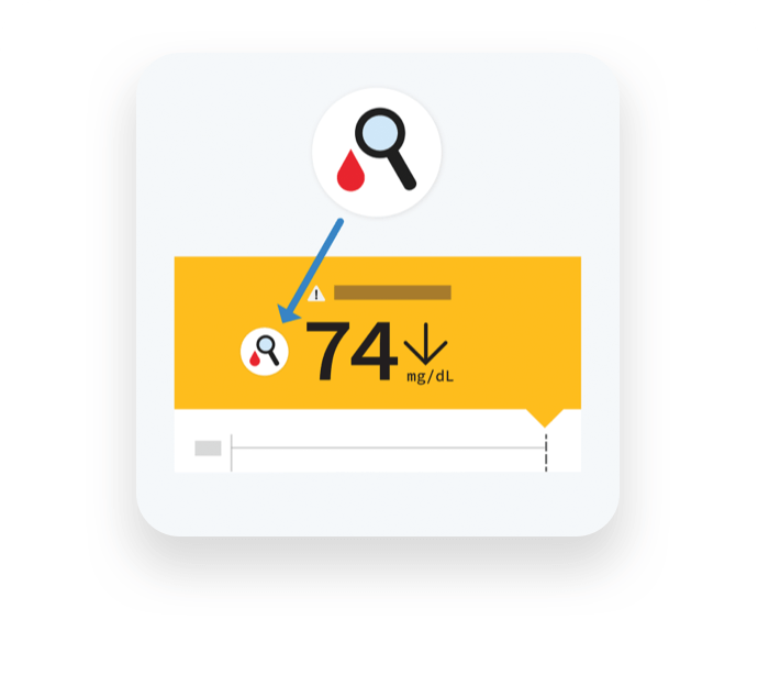 Tu lectura de glucosa actual determinará el color de fondo de la pantalla de tu teléfono. Además la flecha de tendencia muestra  la rapidez con la que cambia la glucosa.