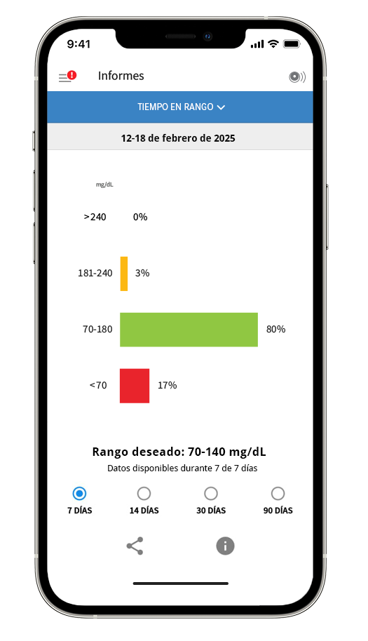 Cuenta con el apoyo adicional de conocer tus niveles de glucosa en tiempo real.