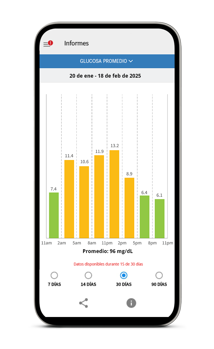 Comprende las tendencias y los patrones que muestran qué es lo que afecta tus niveles de glucosa.