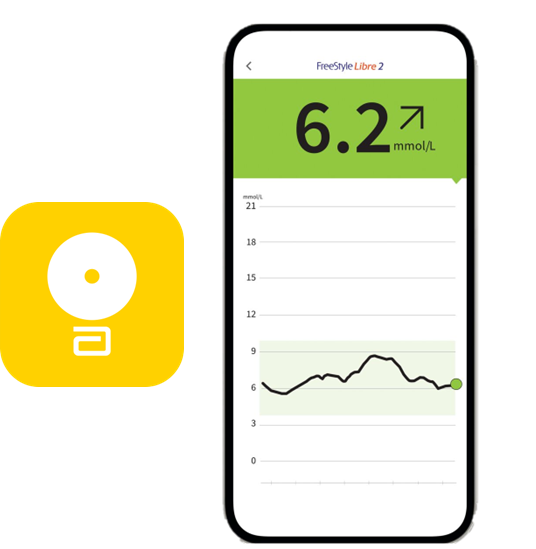 FreeStyle Libre 2 -järjestelmän sensorista glukoosilukemat päivittyvät minuutin välein älypuhelimen18 FreeStyle LibreLink -sovellukseen.