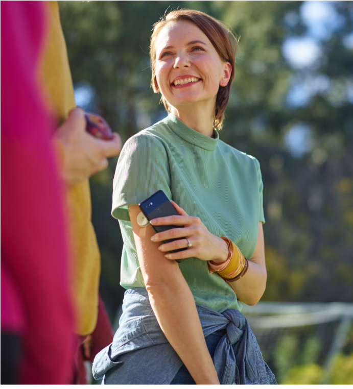 Koristite svoj FreeStyle Libre sustav pametnim telefonom12 kako biste pratili i dijelili svoje vrijednosti glukoze bilo kada8 i bilo gdje 9, bez potrebe za čitačem.