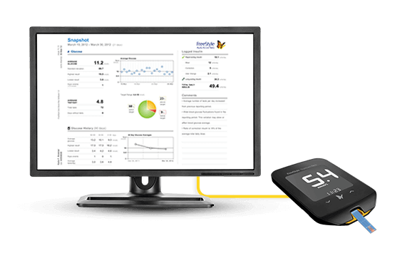 The Snapshot Report provides a data summary for a specified date range, including up to six notes relating to important blood glucose trends.