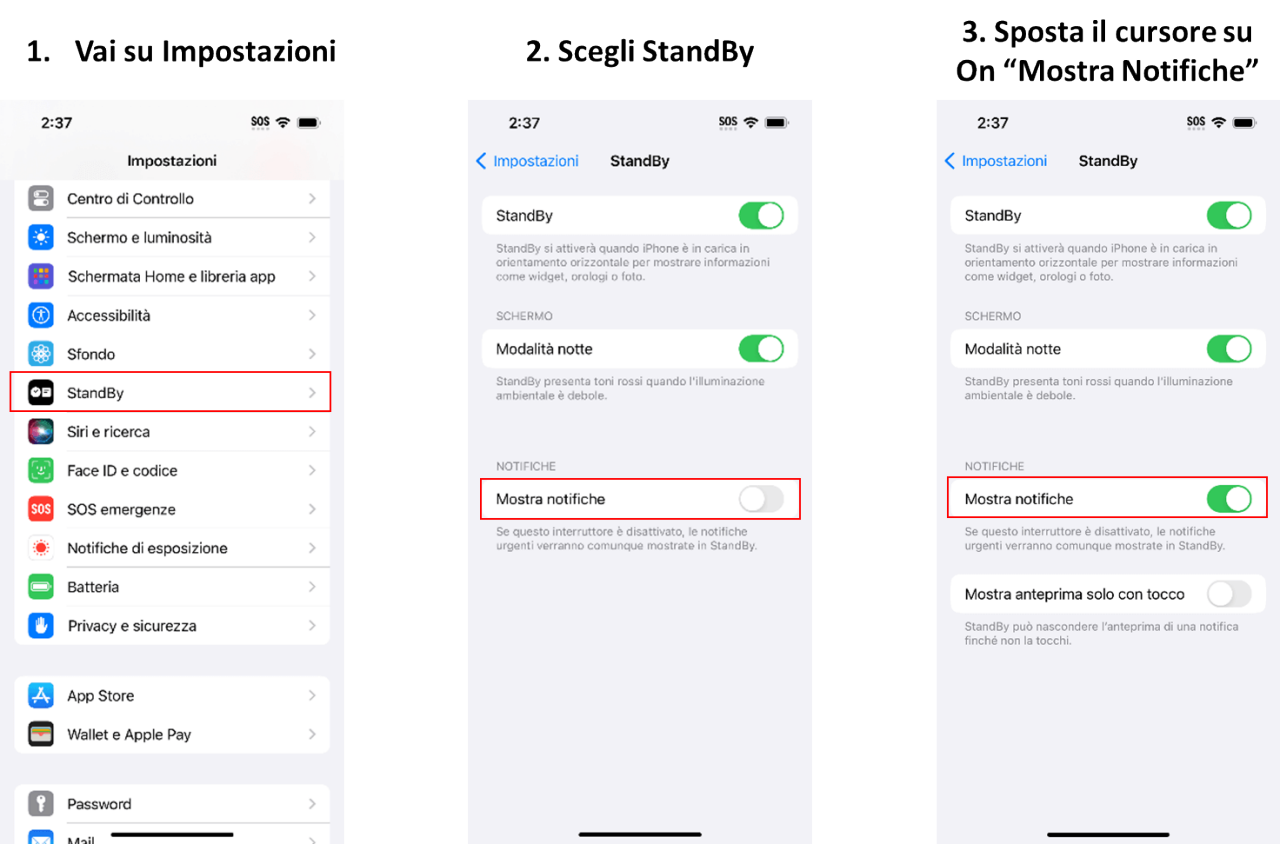 Se prevedi di utilizzare la modalità StandBy, è importante configurare correttamente le impostazioni del telefono. Segui questi tre passaggi per assicurarti di continuare a ricevere le notifiche urgenti: