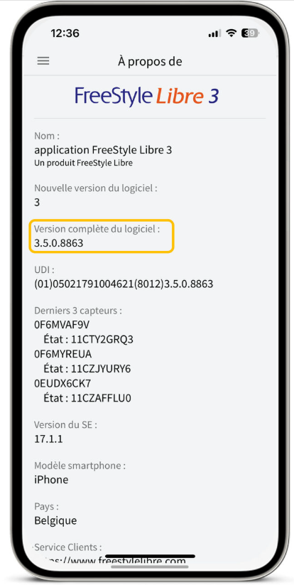 Dans la mesure du possible, assurez-vous d'utiliser la dernière version de l'app FreeStyle Libre 3 disponible dans l'App Store ou Google Play1.