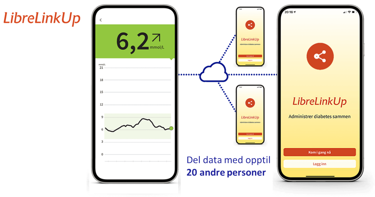 Du kan dele din glukosedata med familie og venner. Spesielt nyttig for foreldre og omsorgspersoner. Data som er samlet i FreeStyle Libre 3 appen27 eller FreeStyle LibreLink3 kan automatisk deles med opptil 20 personer på LibreLinkUp appen.2,5,19