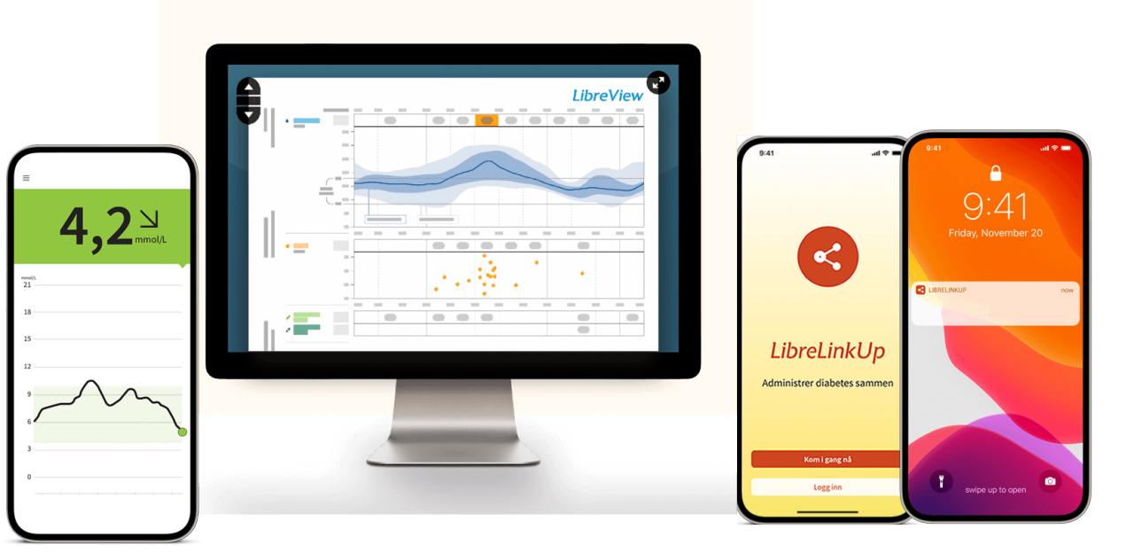 Oppdag hvordan FreeStyle Libre porteføljen av apper og diabeteshåndteringssystem kobles sammen for å hjelpe deg å håndtere din diabetes bedre.
