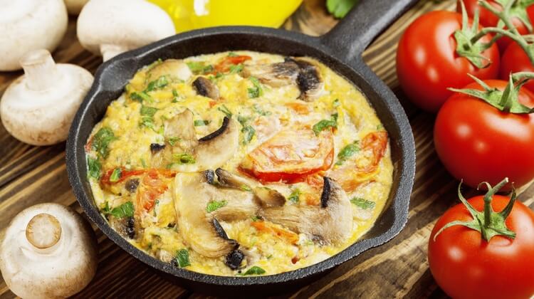 Frittata to popularne włoskie danie. Może być spożywana jako pożywne śniadanie, szybki obiad lub zdrowa kolacja. Jajka należy smażyć na małym ogniu, a następnie można zapiec frittatę w piekarniku.