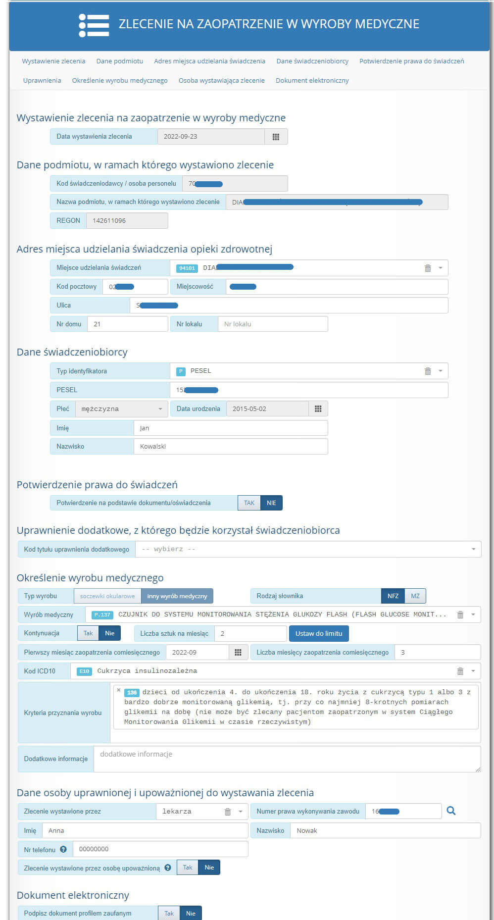 Jak wygląda prawidłowo wystawione online zlecenie na wyrób medyczny?