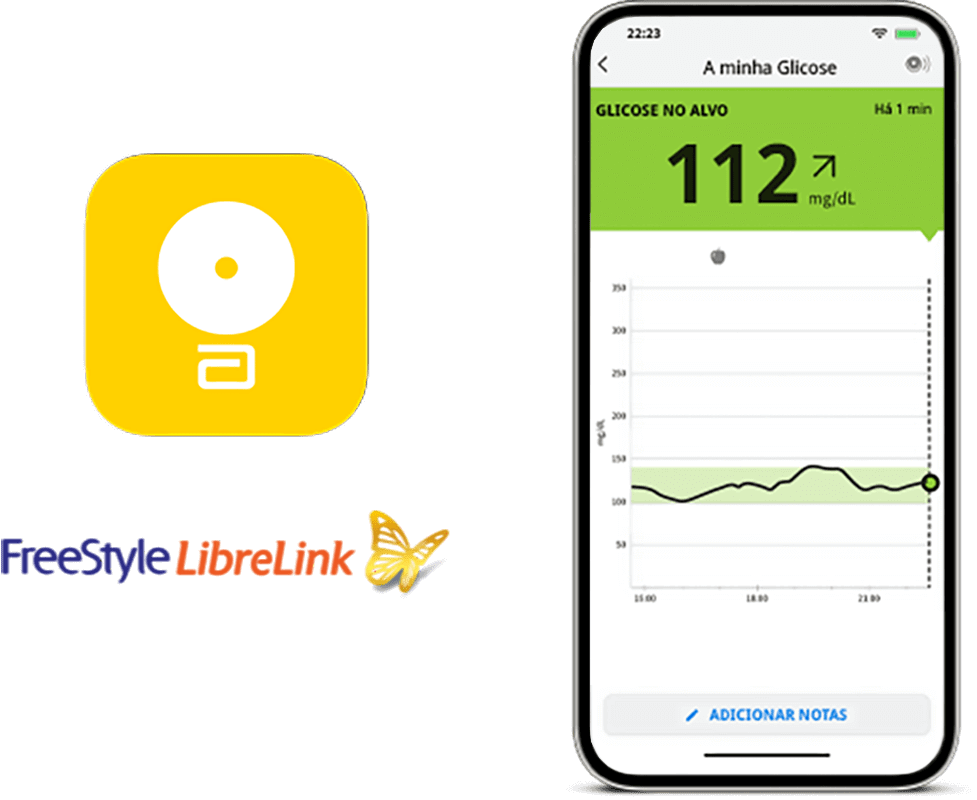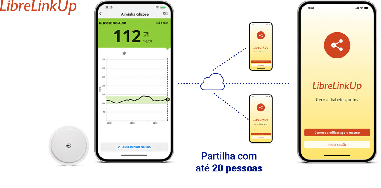 Descarregue e use a aplicação FreeStyle LibreLink para ler o seu sensor, e faça a ligação com o LibreLinkUp dos seus familiares, para que eles possam estar atualizados dos seus valores de glicose, onde quer que esteja.ǁ