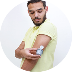 This small, discreet and water-resistant2 sensor is worn on the back of your upper arm and lasts for up to 14 days whilst you shower, bathe, swim, exercise or play.