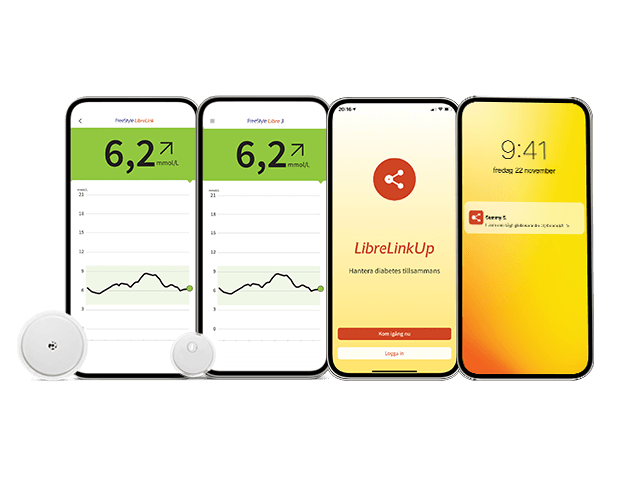 FreeStyle Libre 3 appen är endast kompatibel med vissa mobila enheter och operativsystem. Kontrollera kompatibilitetsguiden för mer information om enhetskompatibilitet innan appen används. Delning av glukosdata kräver registrering i LibreView.