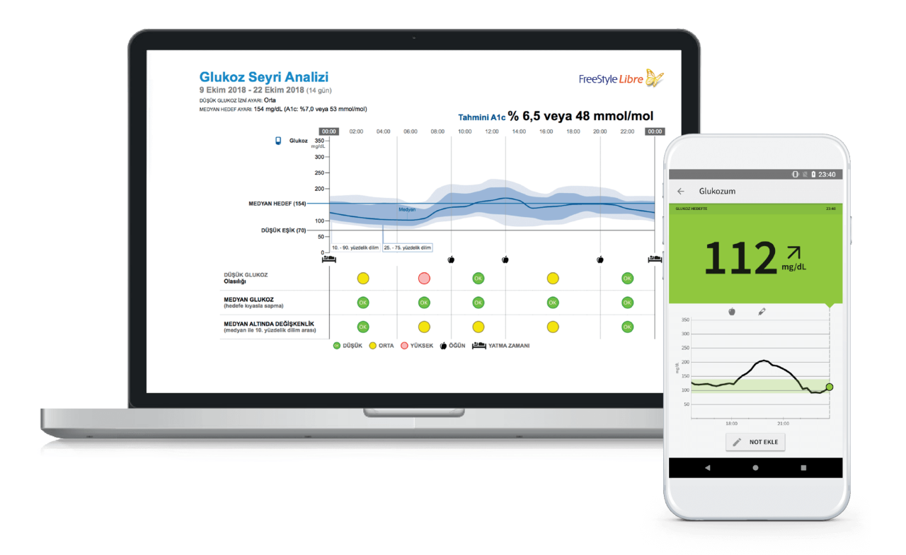FreeStyle Libre Sistemi ile sık aralıklarla glukoz ölçümünü yapman, gün içinde farklı koşullara göre değişen glukoz seyri ile ilgili detayları görmeni ve buna göre diyabet tedavinde doğru aksiyonları almanı sağlar.