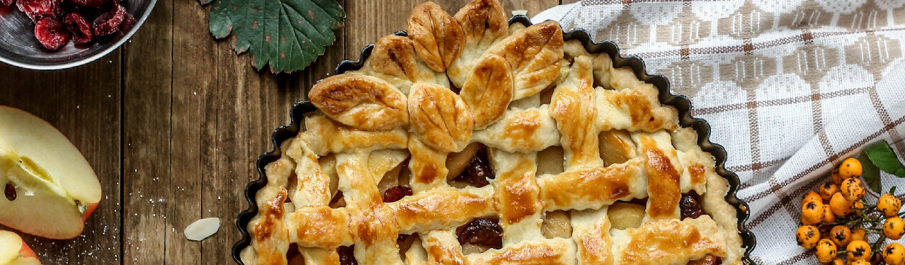 Kalan hamuru bir şerit şeklinde yuvarla ve şeritleri kes. Bu hamur şeritlerini elma harcının üzerine yerleştir. Şeritlere fırça yardımıyla çırpılmış yumurta sür.