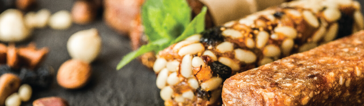 Öncelikle çiğ kaju, badem, fındık ve antep fıstığını blender ile çekin, robotta rahat çekebilmek için malzemelerin hemen hemen yarısına gelecek şekilde sıcak su ekleyin.Daha sonra üzerlerine file Antep fıstığı, file badem ve toz tarçın ekleyin. Kiraz kurusu, siyah kuru üzümü, fıstık ezmesini, yulaf ezmesini ve balı karışıma ilave ettikten sonra karışımı yağlı kağıda sererek fırında 20-30 dakika pişirin.